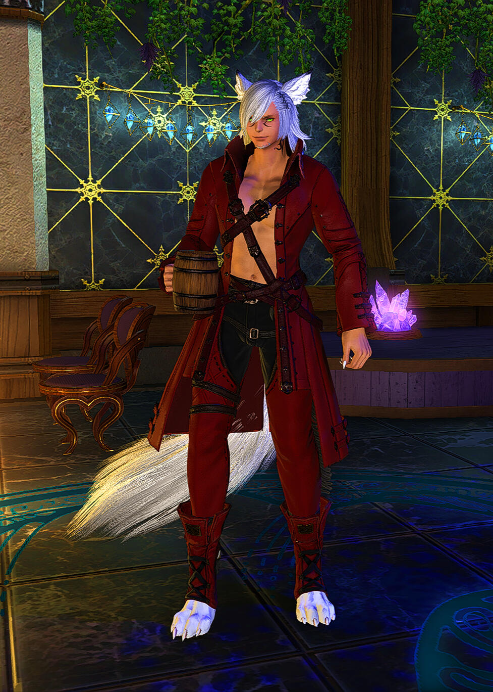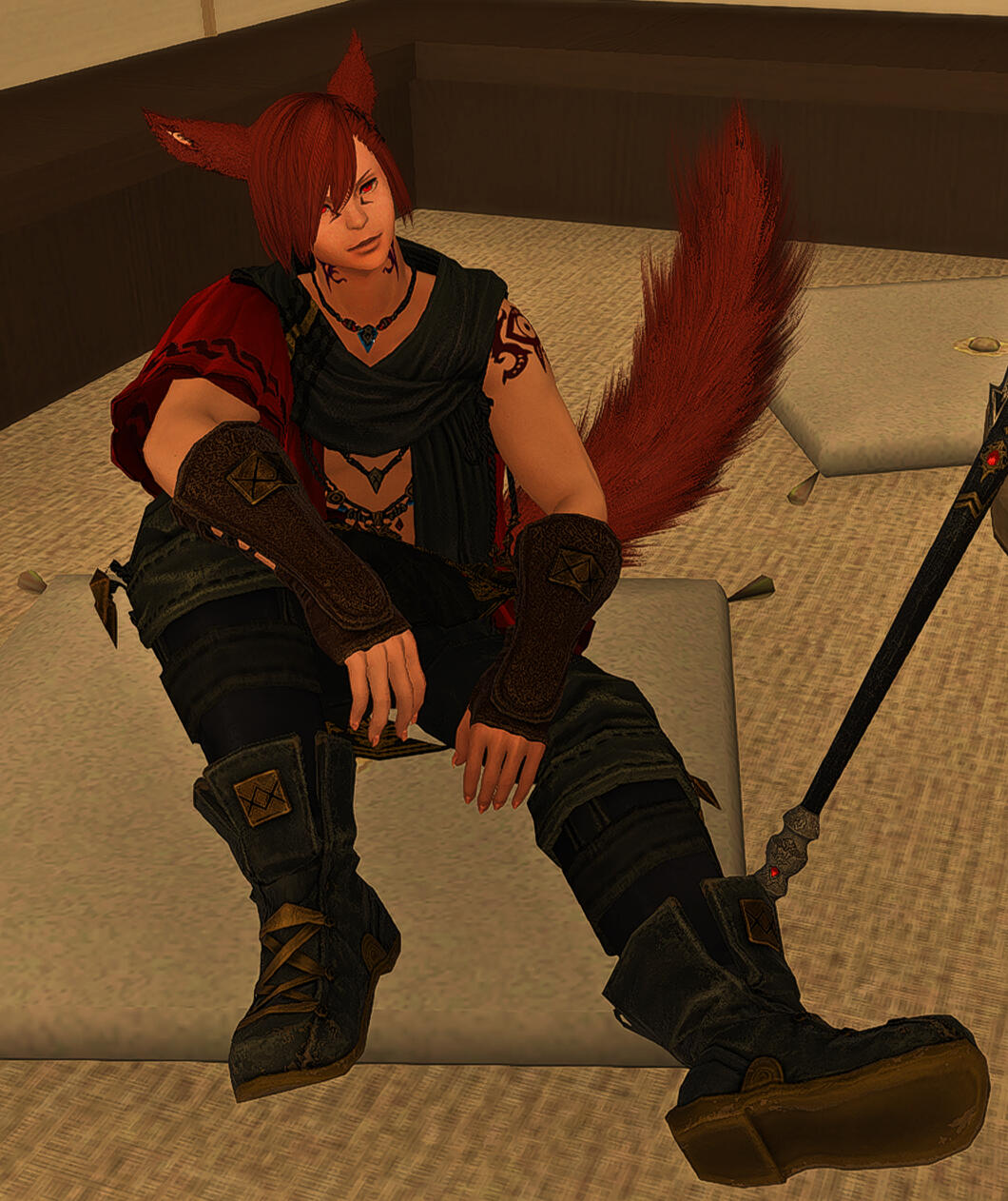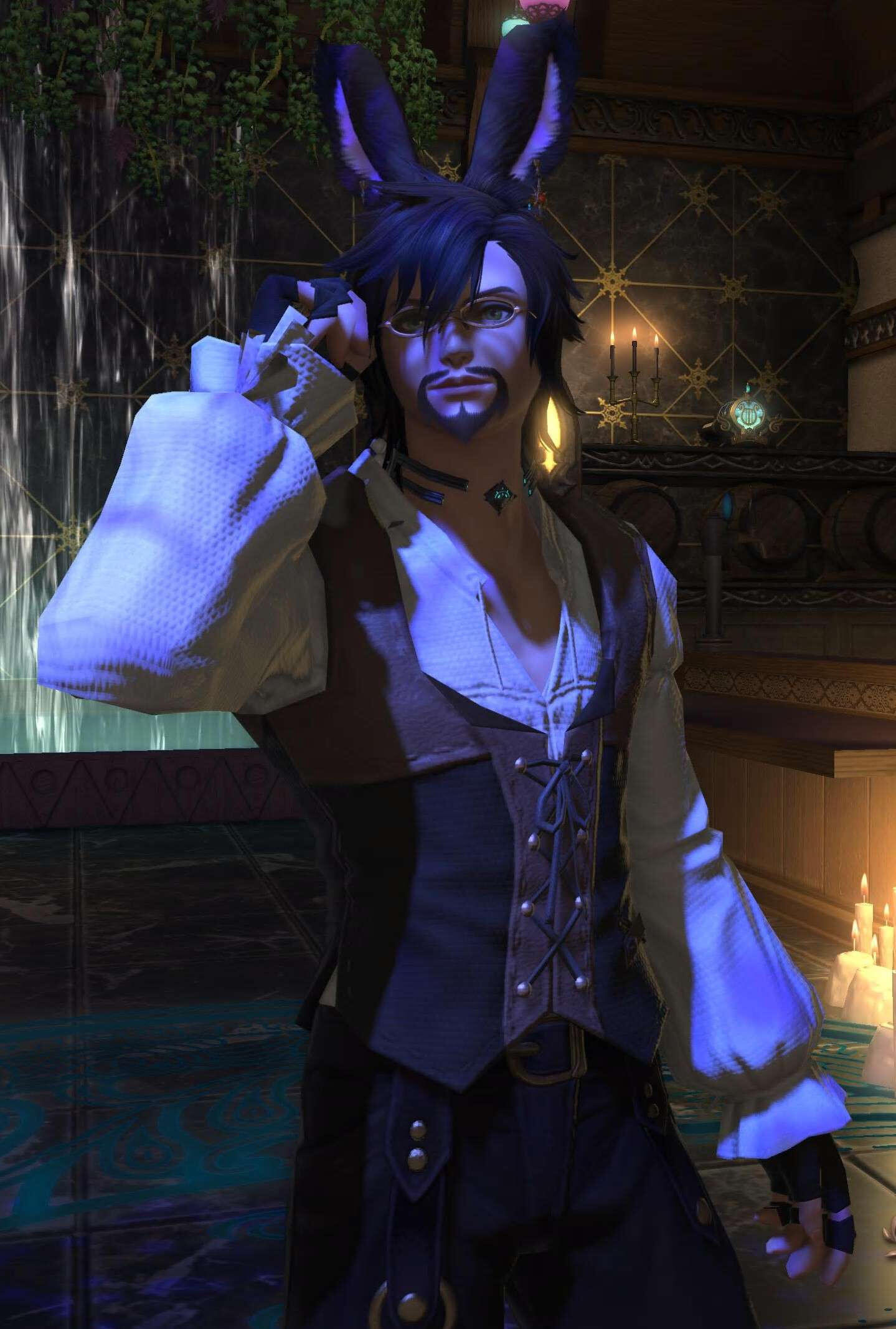 An on-hiatus military man from Ishgard who's been working odd jobs to support his family with the extra cash. He is the most comfortable talking about his adventures and especially the wildlife and monstrosities he saw as a hunter. If his military exploits are brought up, he will neither confirm nor deny them unless the person engaging drops very specific details. Always pleased to have a good chat and serve a strong drink or even play a game or two of Triple Triad.