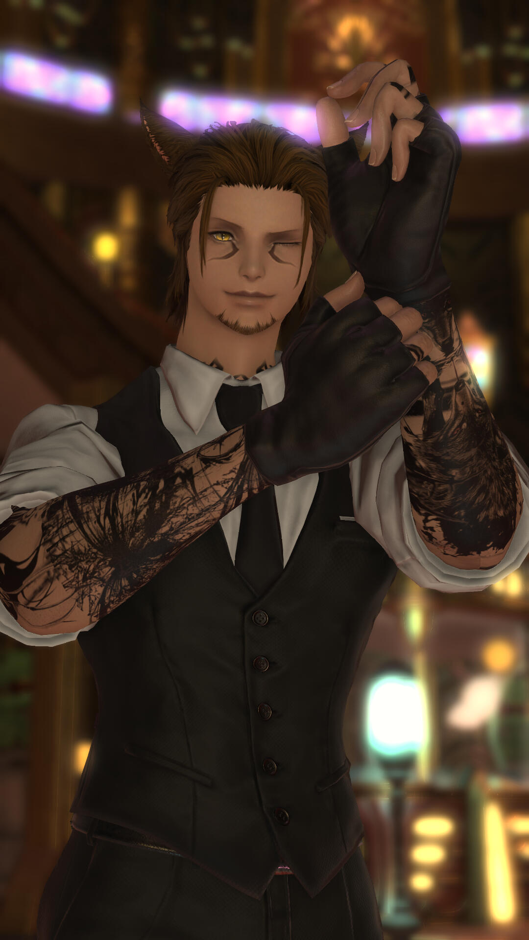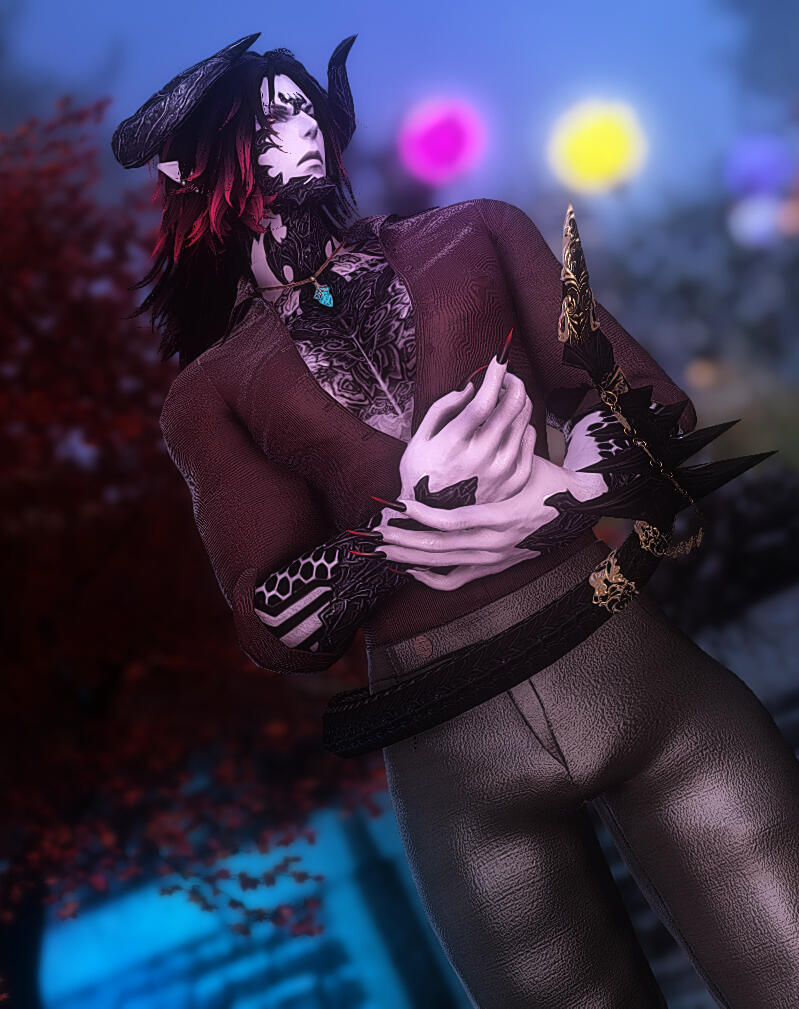 Likes: Weaving, Mining, Magic Studies, Collecting Animals (Large and Small), Singing/Dancing, Cooking/Homemaking, Very Complicated Cocktails, Courels/Miqo'tes, Sharing Adventuring Tales, Hot Chocolate, Talking about his husband